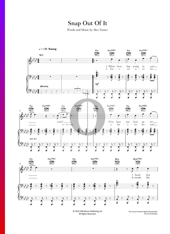 Snap Out Of It Lyrics. Arctic Monkeys Snap Out Of It (Lyrics) YouTube Snap out of it (snap out of it) I get the feeling I left it too late but baby Snap out of it (snap out of it) If that watch don't continue to swing Or the fat lady fancies having a sing I'll be here Waiting ever so patiently for you to Snap out of it Snap out of it (Snap out of it) I get the feeling I left it too late, but baby Snap out of it (Snap out of it) If that watch don't continue to swing or the fat lady fancies having a sing I'll be here waiting ever so patiently for you to Snap out of it Forever isn't for everyone Is forever for you? It sounds like settling down or giving up
